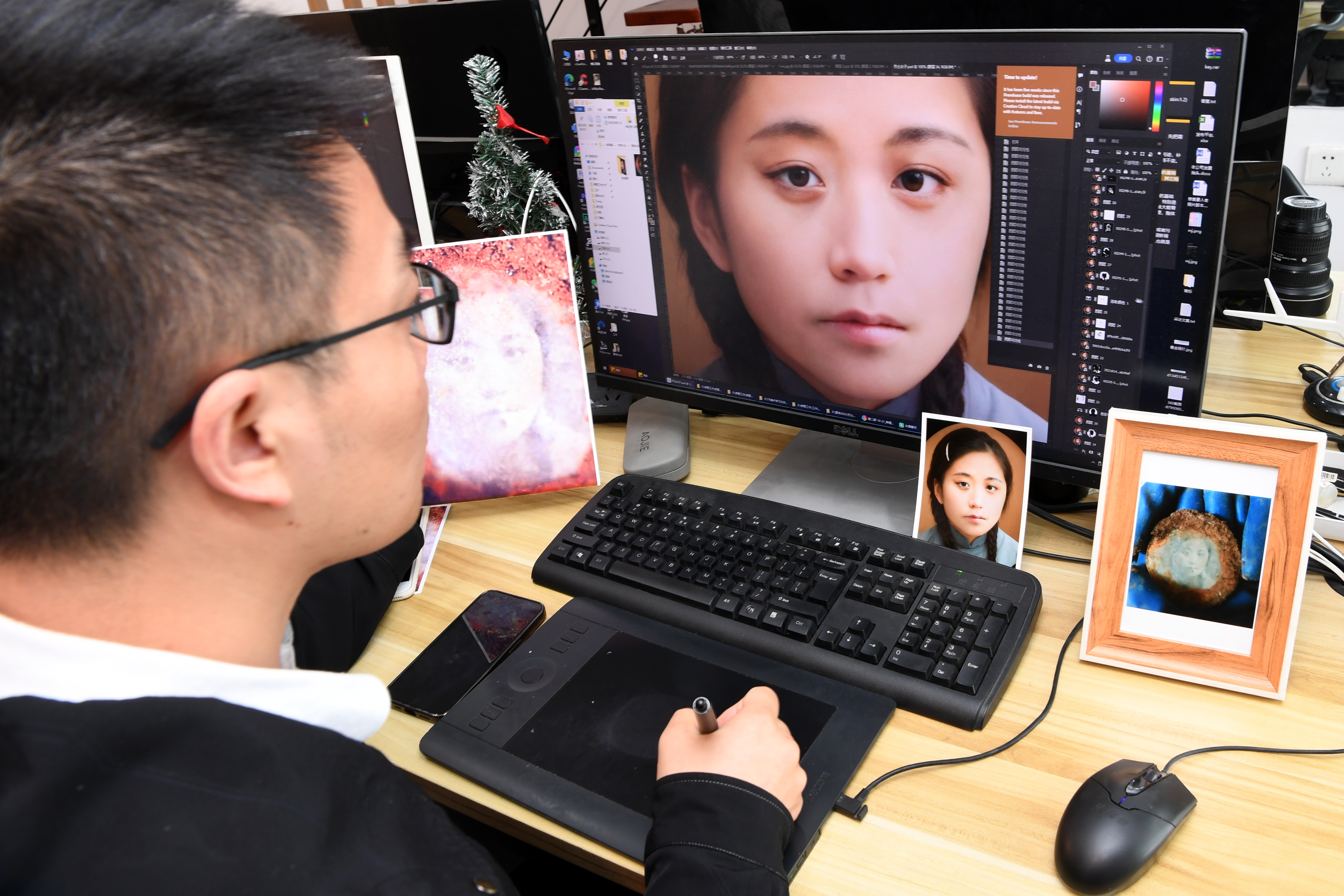 这个时候团队每个人会各自出一个版本,反复比对哪些部位更像,最后再合成在一起。“最难的一张照片,团队整整花了一周时间。”